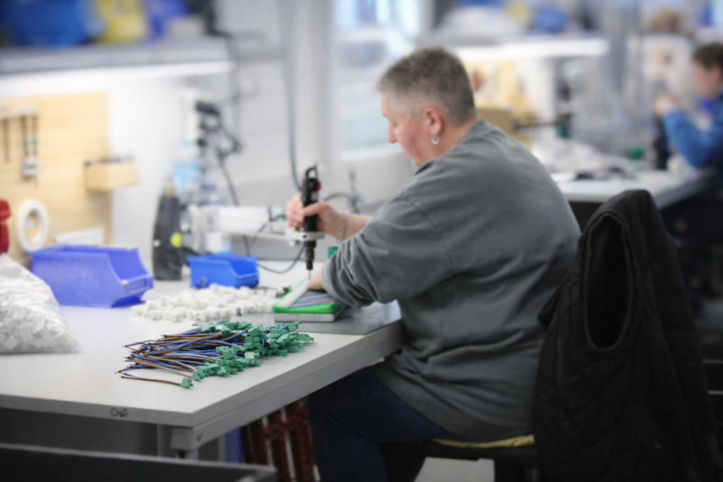 "Als Produktionshelfer arbeite ich jeden Tag an unterschiedlichen Aufgaben in der Fertigung. Mir gefällt besonders, dass die Arbeit abwechslungsreich ist und man Teil eines eingespielten Teams ist. Wenn Hilfe gebraucht wird, unterstützen wir uns gegenseitig. So läuft die Arbeit gut und man geht am Ende des Tages mit einem guten Gefühl nach Hause." - Susan Ostmann, Mitarbeiterin in der Produktion
