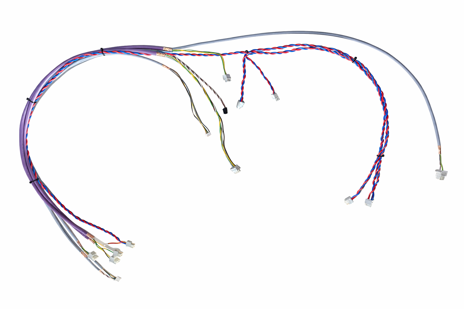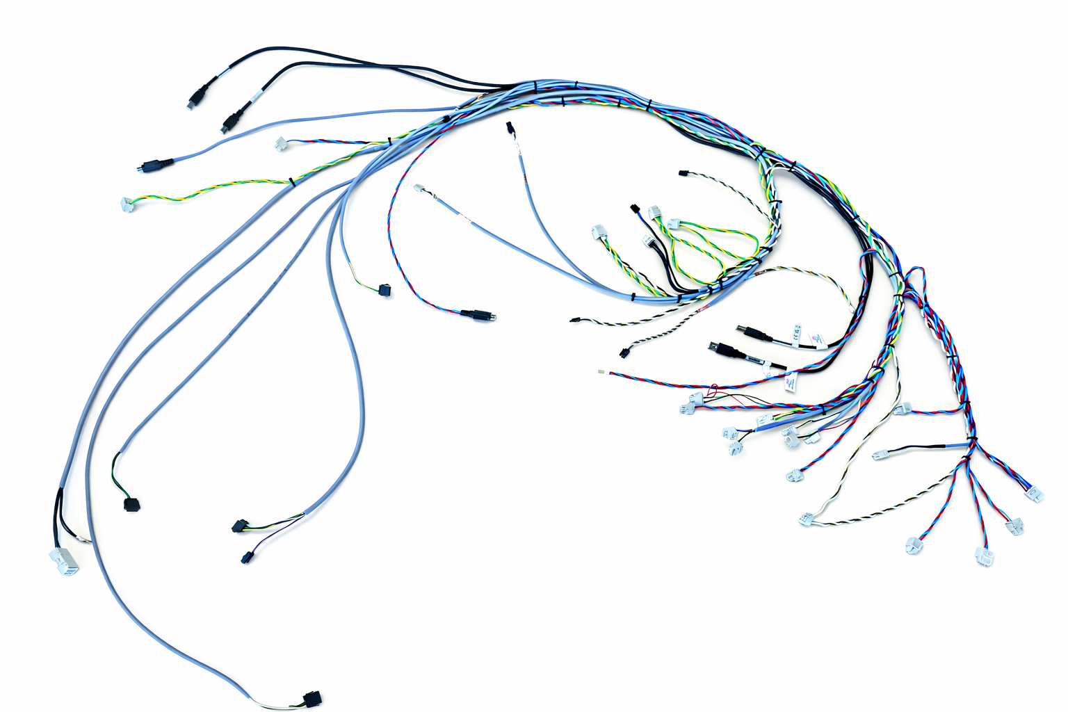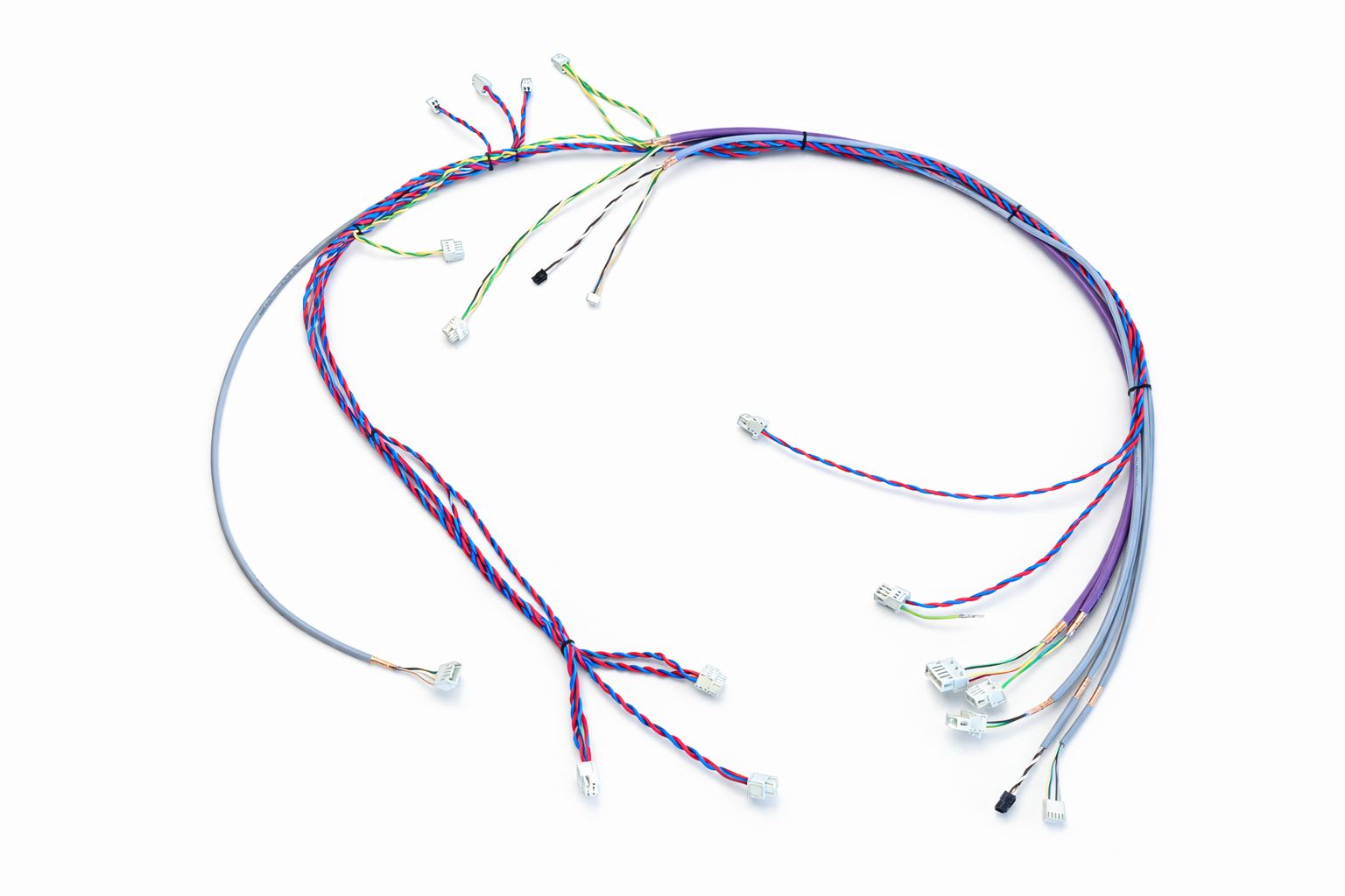 Je nach Anforderung führen wir unterschiedliche Leitungsarten, Steckverbinder und Verbindungselemente zu einem kompletten Kabelbaum zusammen. Dabei achten wir auf eine saubere Verarbeitung, eine strukturierte Leitungsführung und eine gleichbleibend hohe Fertigungsqualität.
